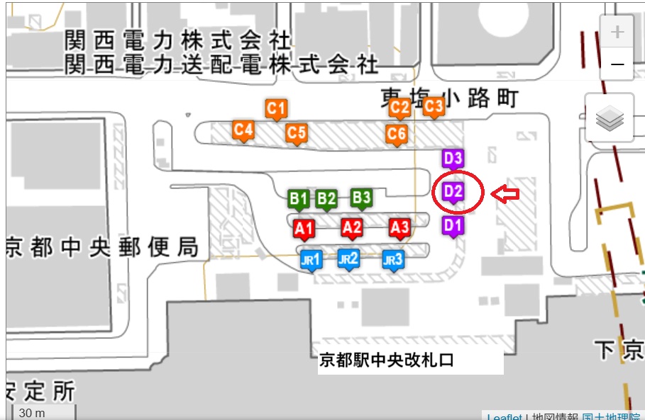 京都駅 八条口 南北自由通路を降りて西側E1乗り場